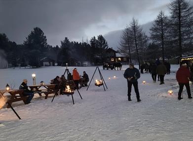 Vi fyrer opp i bålpanner rundt på plassen hvor det serveres gratis gløgg, i Røstestuggu midt på plassen er det kaffesalg.
